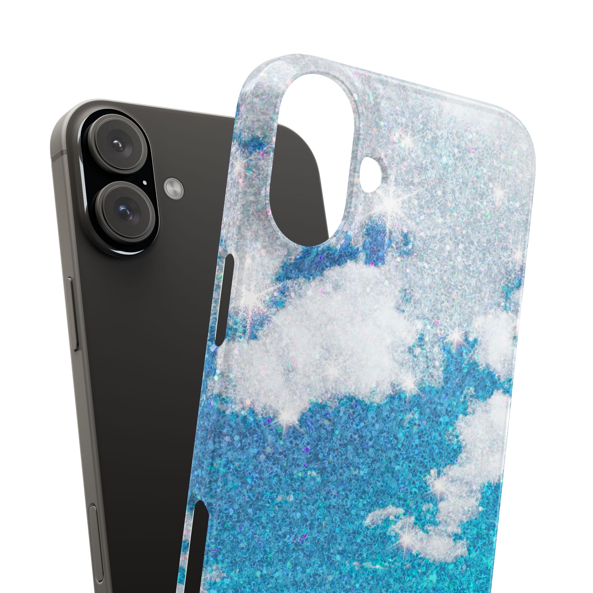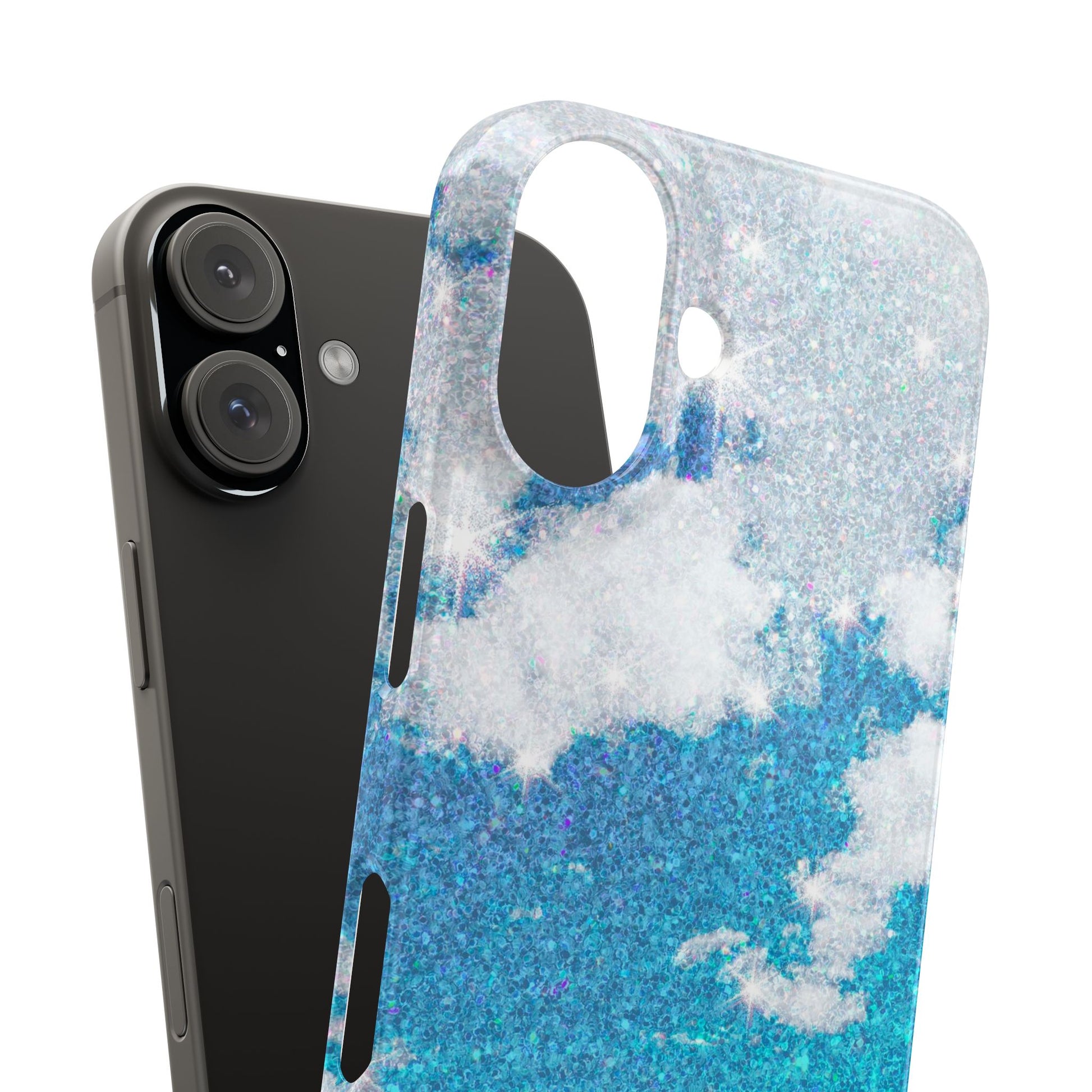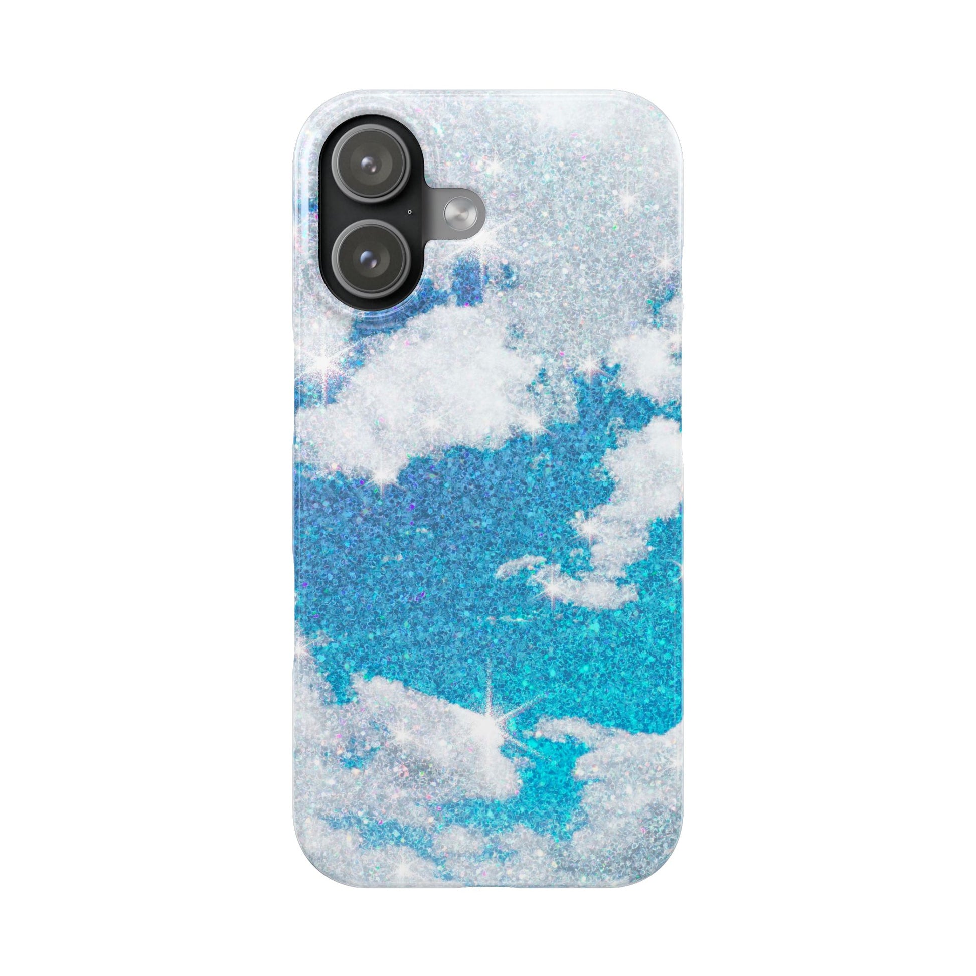 Capture the essence of a bright, clear sky with our Blue Sparkling Sky Phone Case. This design showcases a vivid blue background adorned with glittering clouds, creating a fresh and uplifting look for your iPhone. Perfect for those who love a clean, vibrant aesthetic, this case not only enhances the appearance of your device but also provides robust protection against scratches and drops. The slim profile ensures your phone remains easy to hold and slip into your pocket.