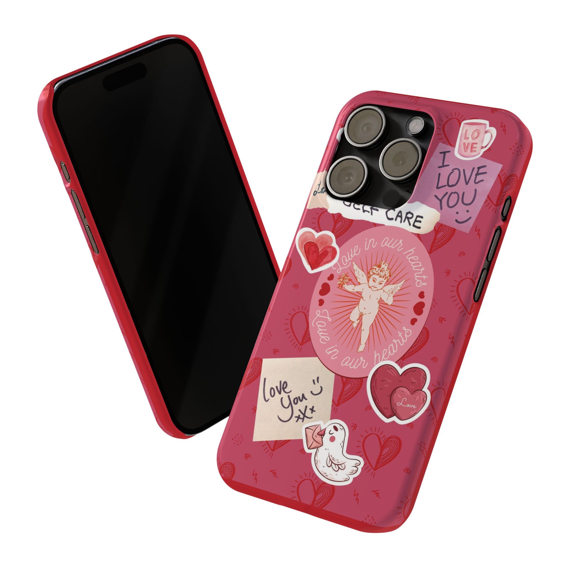 Our Valentine's Day phone cases are the perfect way to spread the love. Choose from a variety of designs, each with a heartfelt message. Each case features adorable stickers and a heart-shaped Cupid in the center.