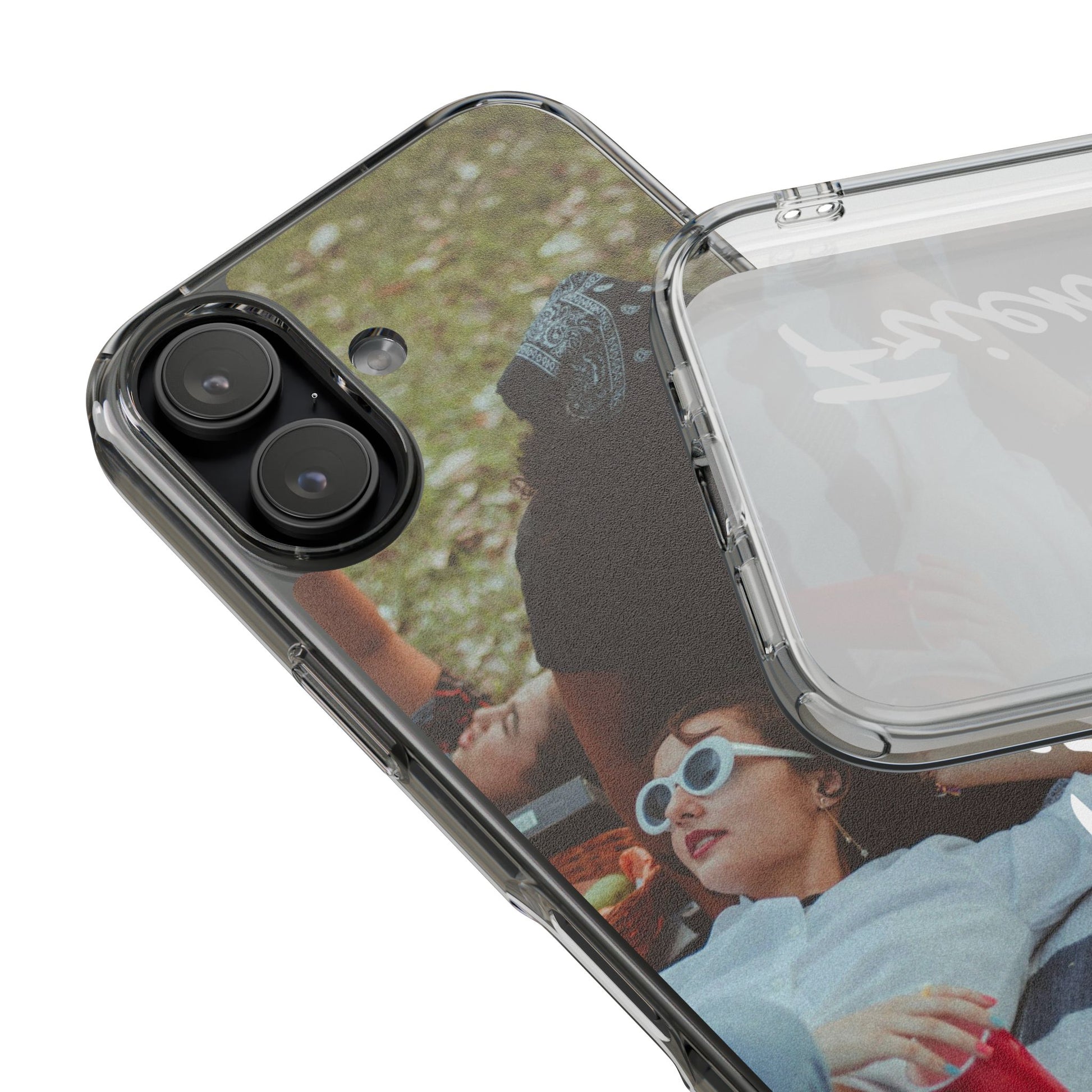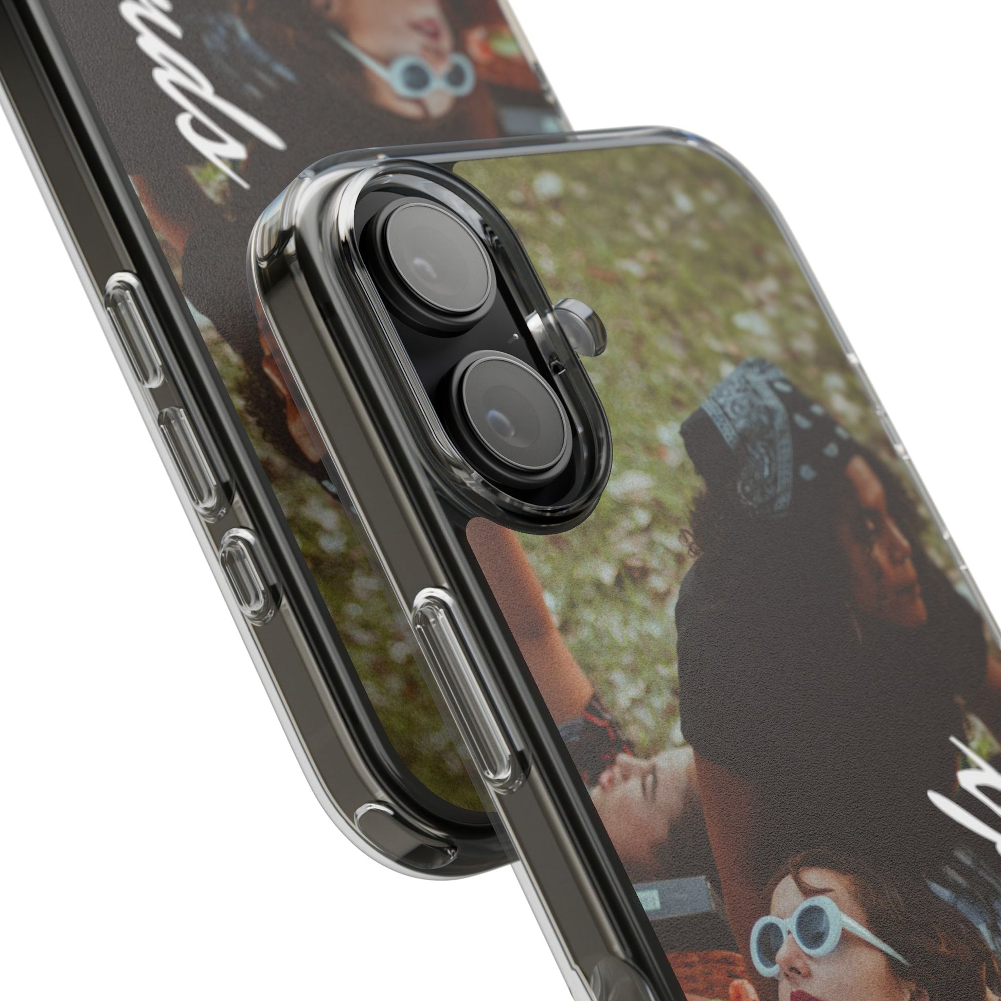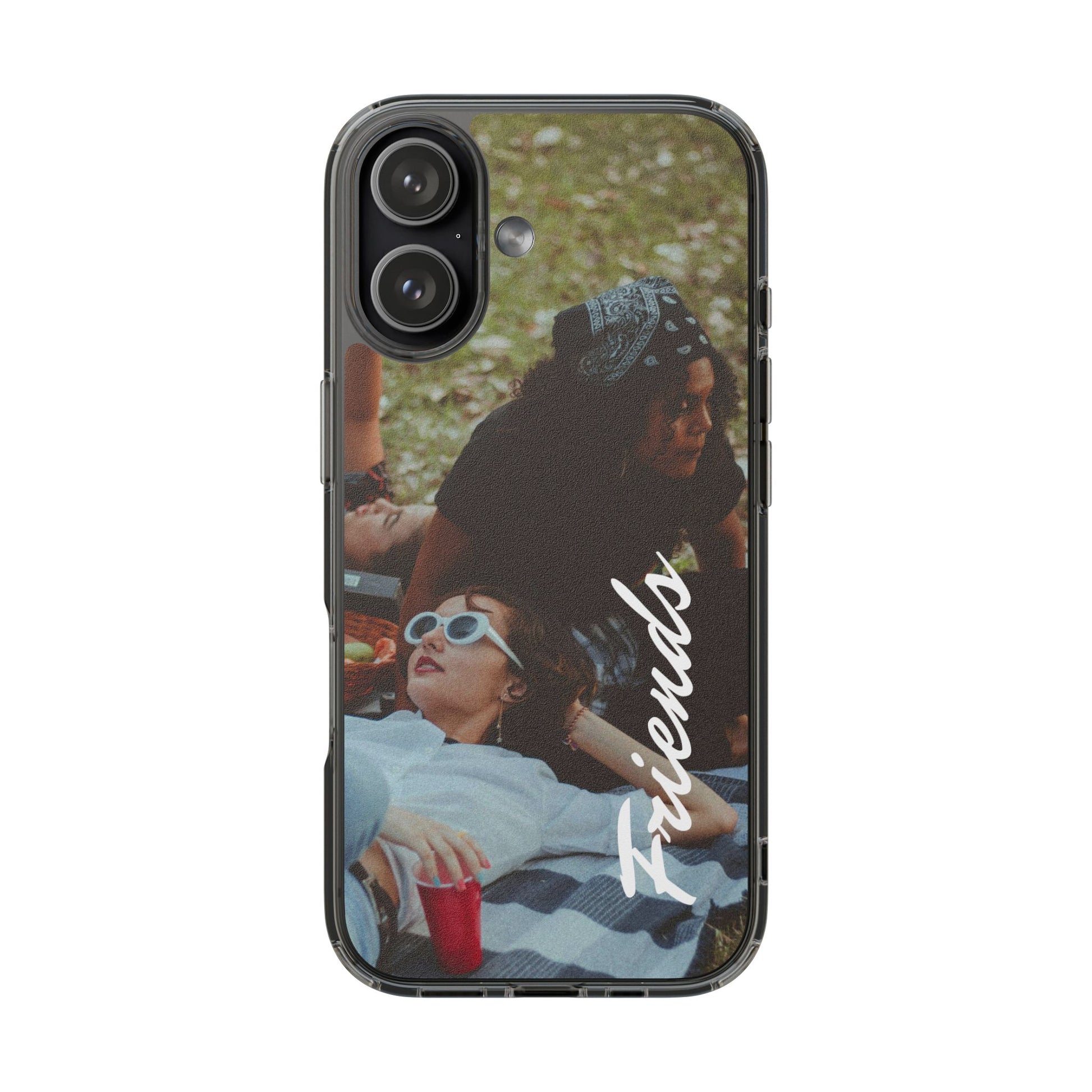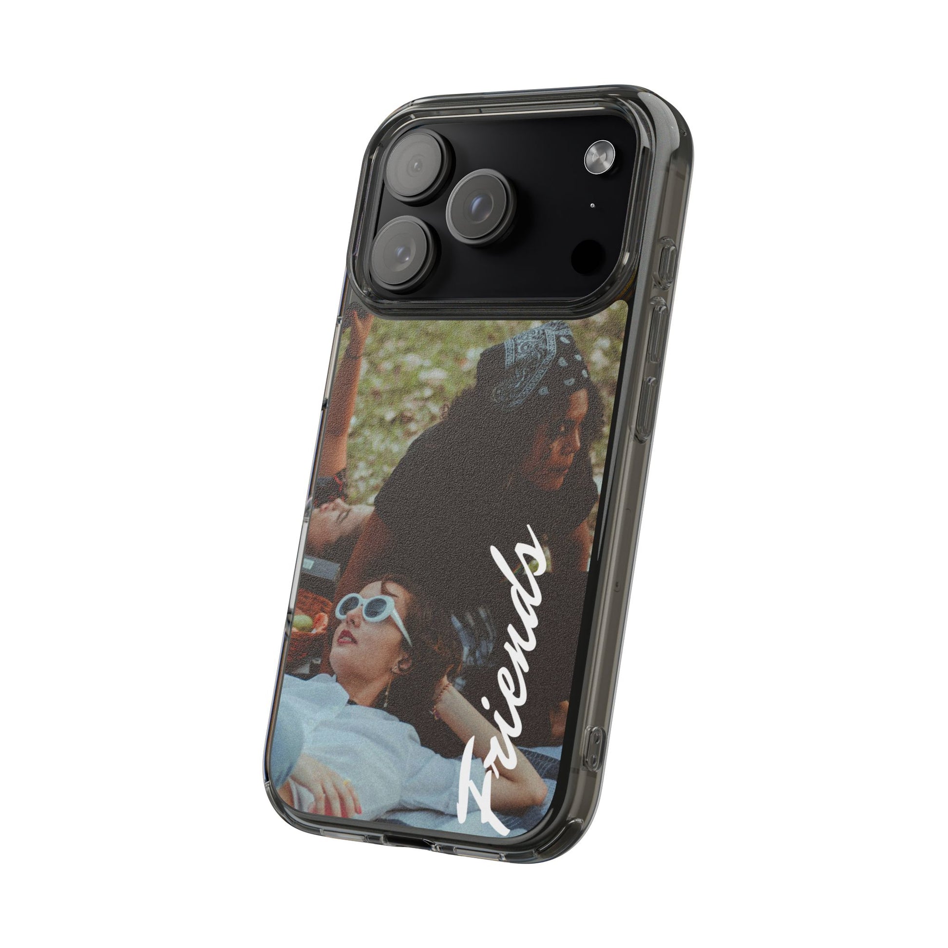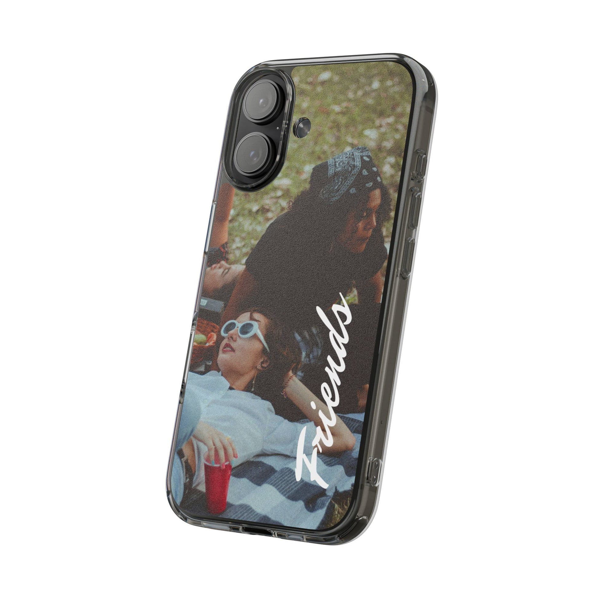 Custom Friends photo phone case with vibrant colors and durable polycarbonate plastic. Compatible with wireless charging, this slim profile case features 3D wrap and in-surface printing for photo-realistic results. Perfect for those who want to showcase their friendship with a personalized touch. Ideal for birthdays, holidays, or just because gifts.