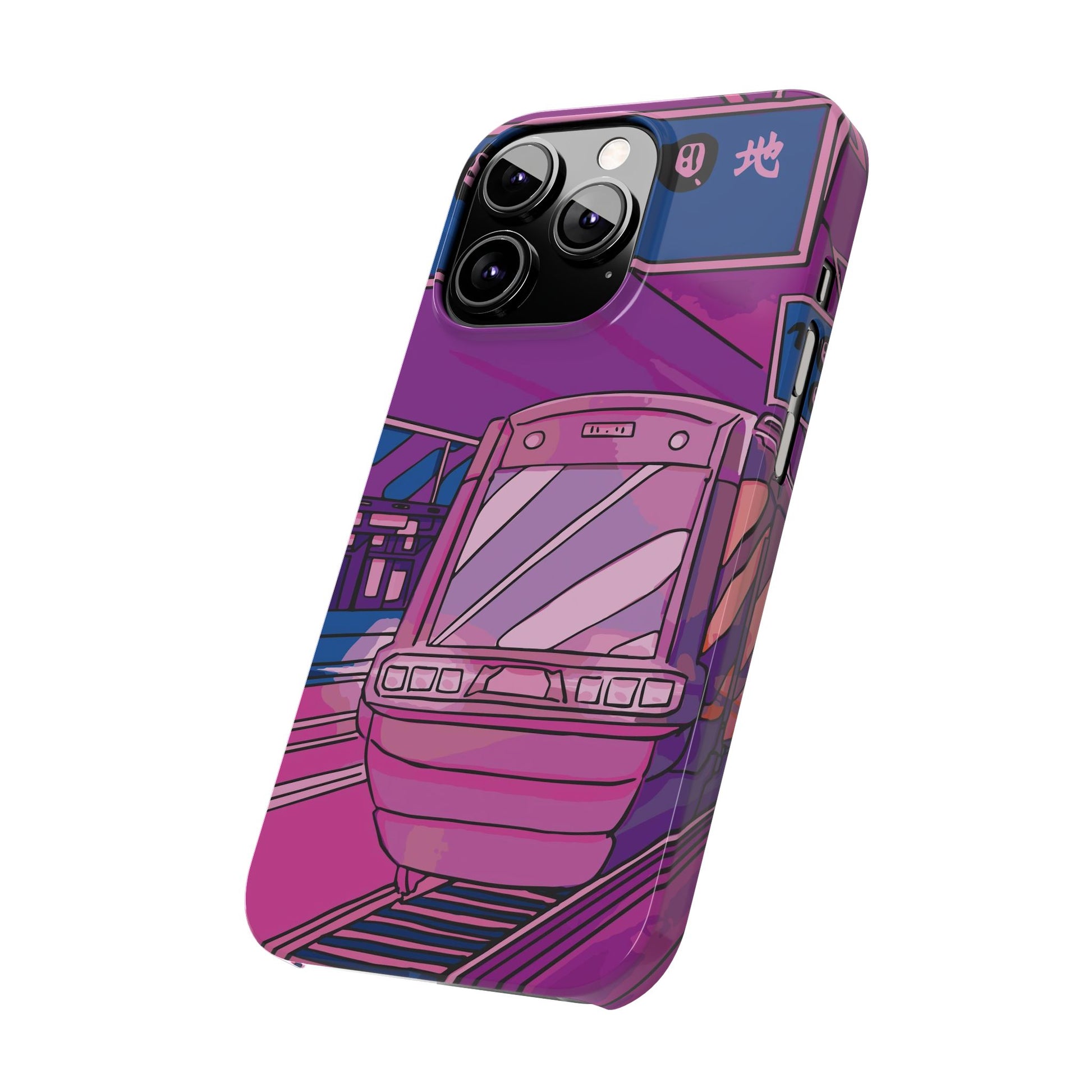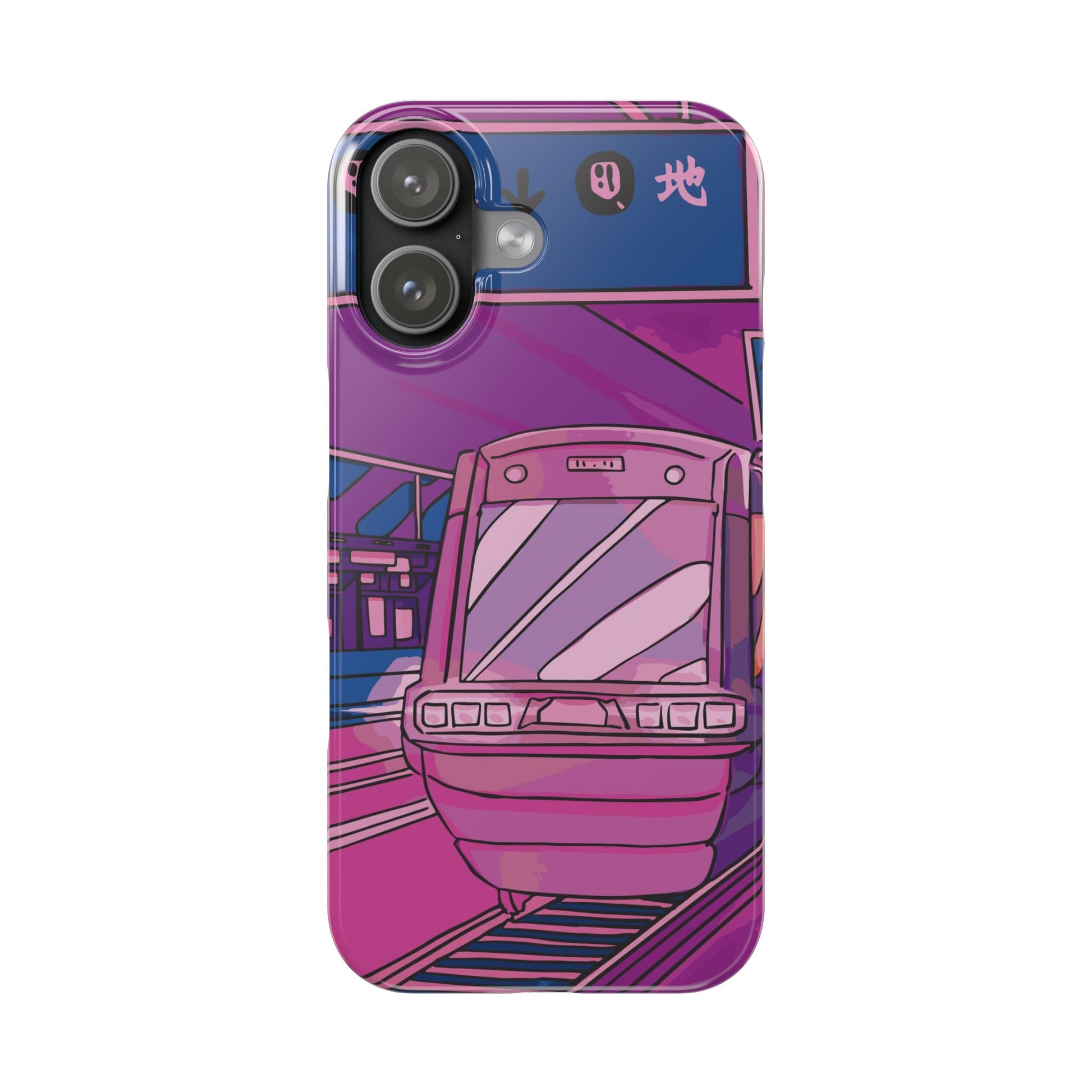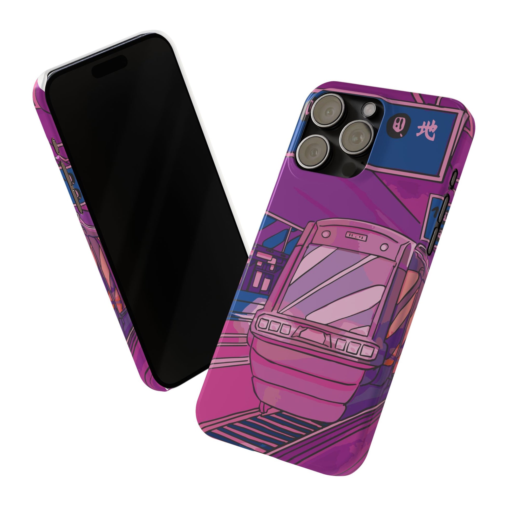 This iPhone 17, 16 to 13 case features a Japanese urban station design in the vaporwave style. Add a touch of contemporary art and a city portrait to your device. Protect your iPhone with unique and sophisticated style. .: Material: Lexan polycarbonate plastic .: Super slim design and glossy premium finish .: Durable and impact resistant material .: Supports wireless charging