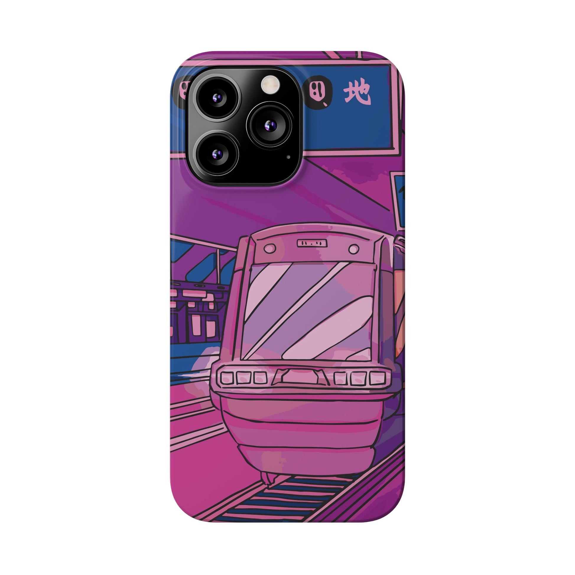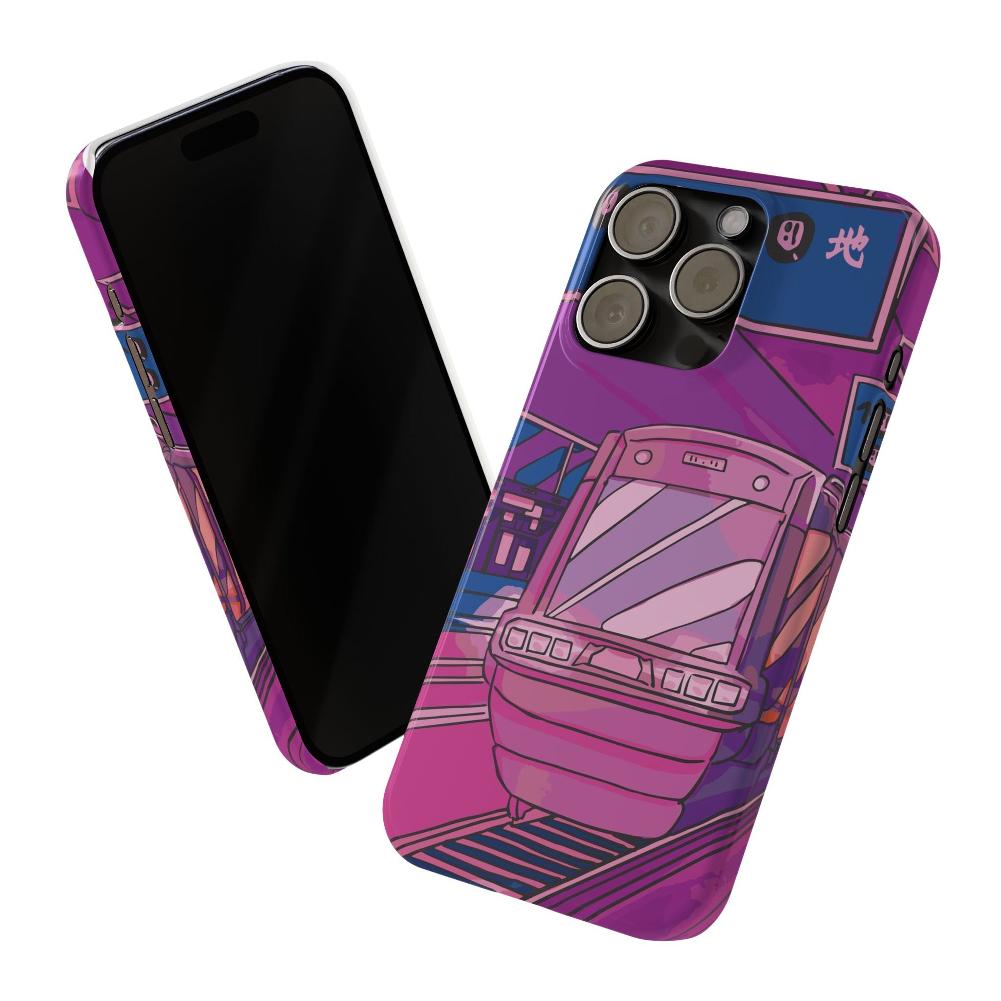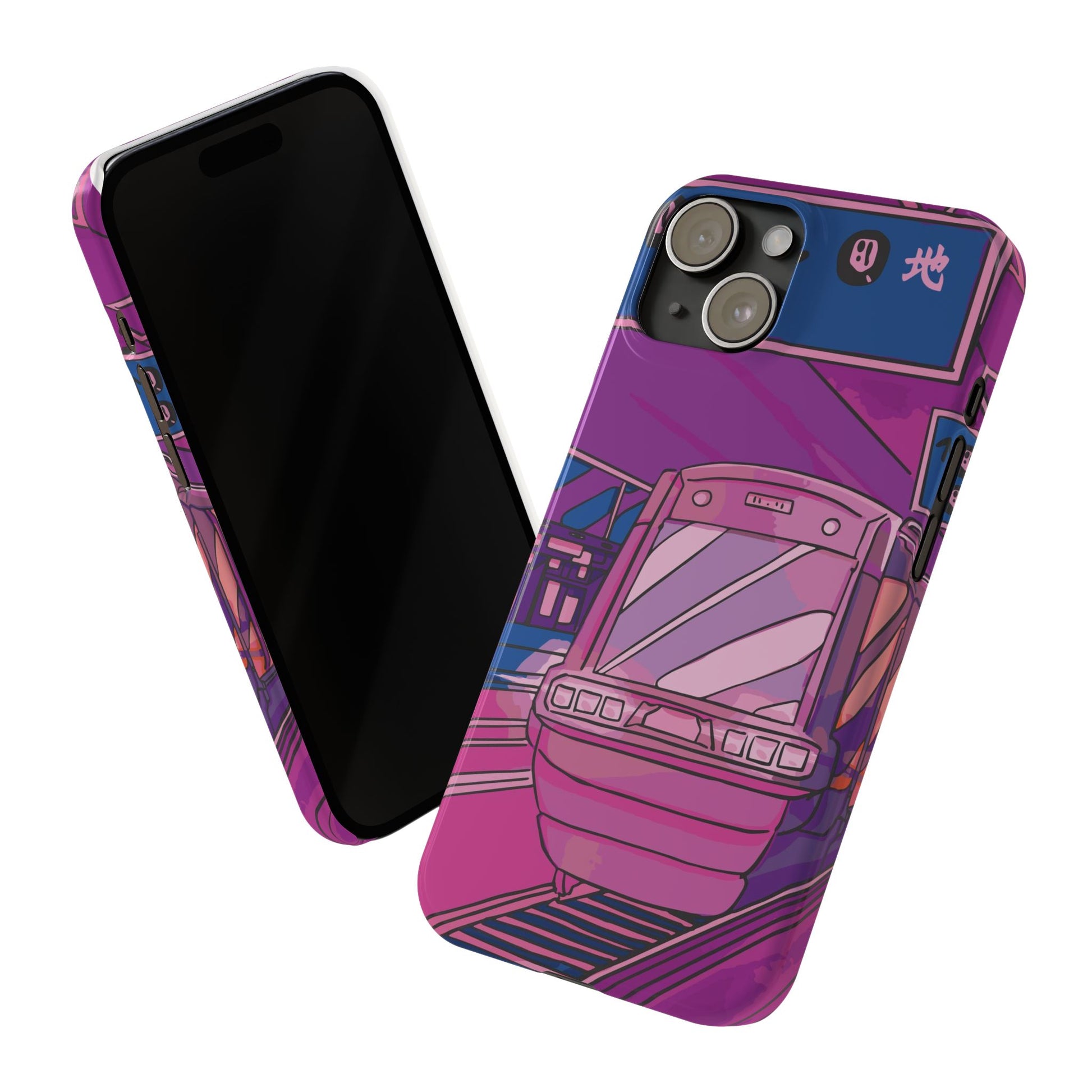 This iPhone 17, 16 to 13 case features a Japanese urban station design in the vaporwave style. Add a touch of contemporary art and a city portrait to your device. Protect your iPhone with unique and sophisticated style. .: Material: Lexan polycarbonate plastic .: Super slim design and glossy premium finish .: Durable and impact resistant material .: Supports wireless charging