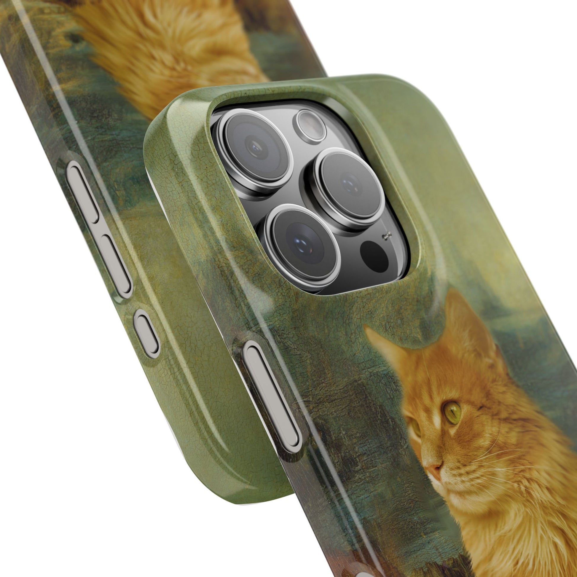 Express your love for art and cats with this unique iPhone case! Inspired by the Mona Lisa, it's perfect for art and feline enthusiasts. Wireless charging compatible. Available for iPhone 17, 16, 15, and 13 Pro/Max. Make a stylish statement while protecting your device .: Material: Lexan polycarbonate plastic .: Super slim design and glossy premium finish .: Durable and impact resistant material .: Supports wireless charging