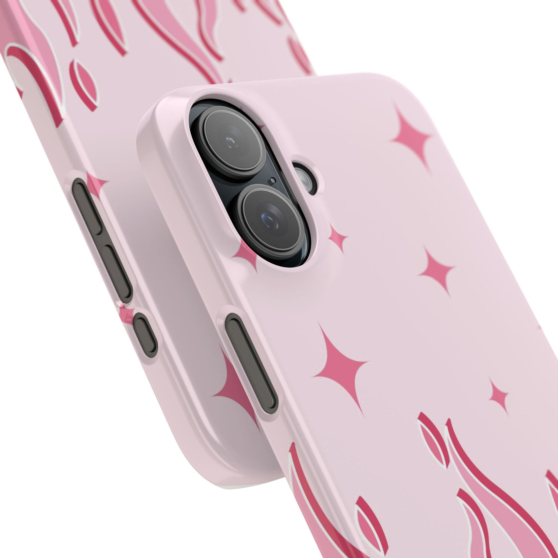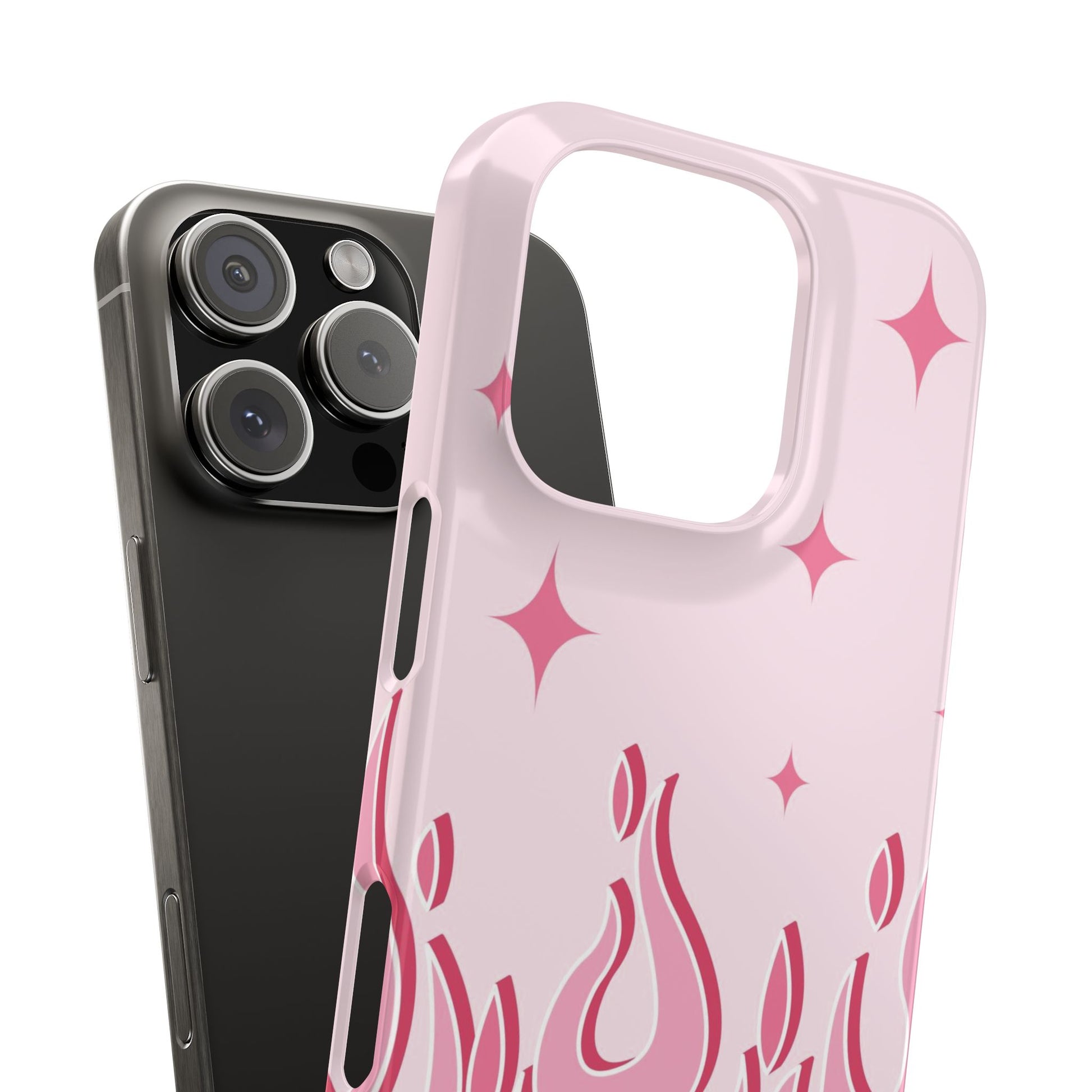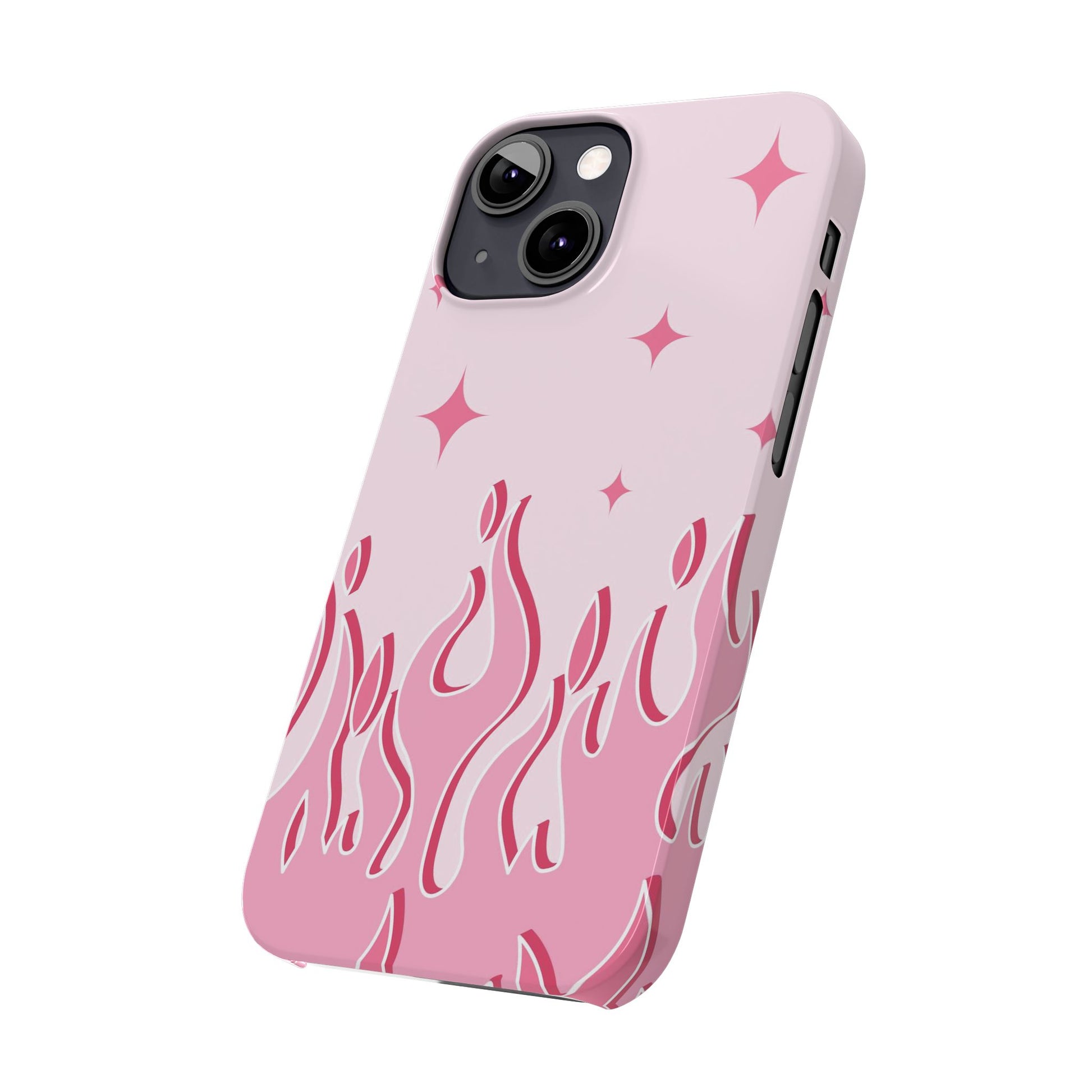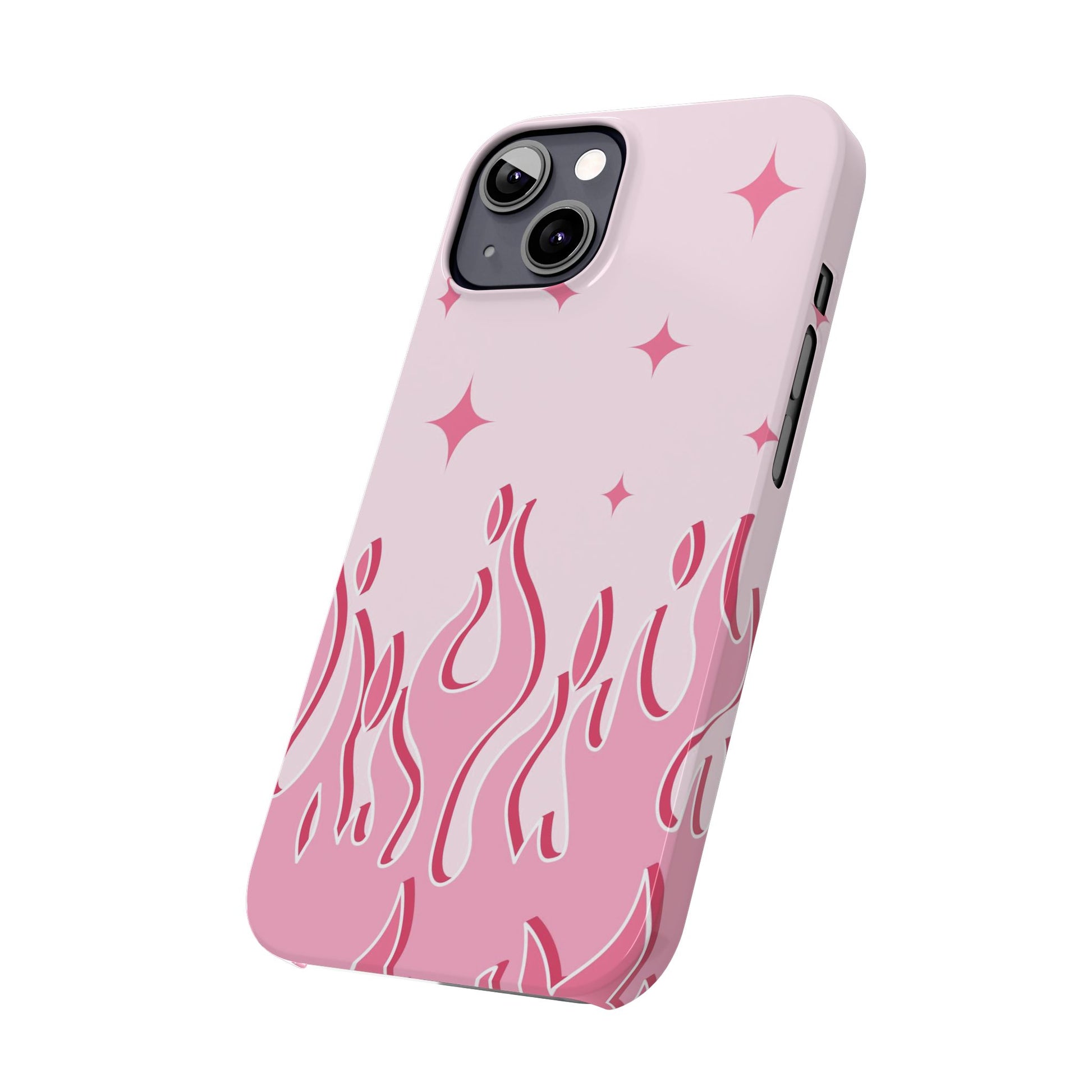 This adorable pink flames and heart iPhone case is perfect for women looking for a feminine and unique case for their phone. The case is made of a durable material and comes in various sizes to fit all iPhone models, from 13 to 15 with their pro and max variants, as well as the iPhone 13 mini. The flame with heart design is eye-catching and sure to attract attention. This case is perfect for carrying your phone with style and personality.