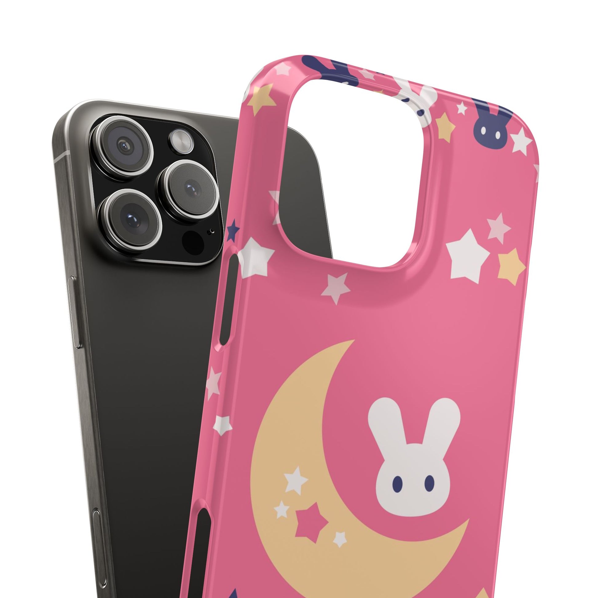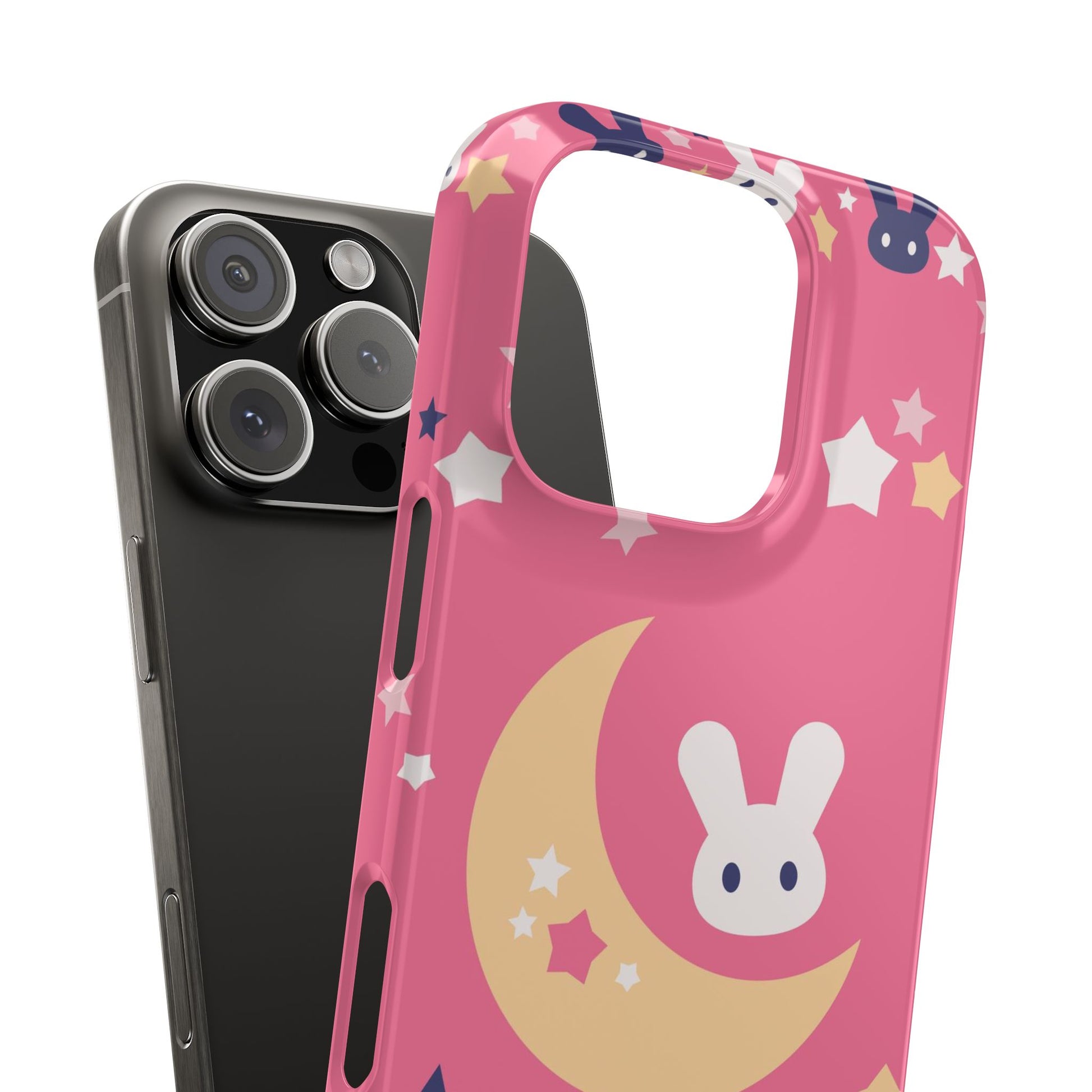 This iPhone case features an adorable pink design of baby bunnies with moons in the background. It's perfect for kids and bunny lovers alike.